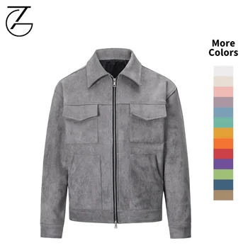 Oem Custom Logo Suede Jacket Men High Street Multi-Pocket Loose Double Zipper Casual Men's Solid Color Jacket