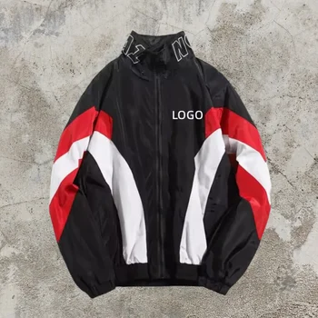 OEM Logo Zip up Jacket Color Block Stand Collar Vintage Windbreaker Track Nylon Jacket
