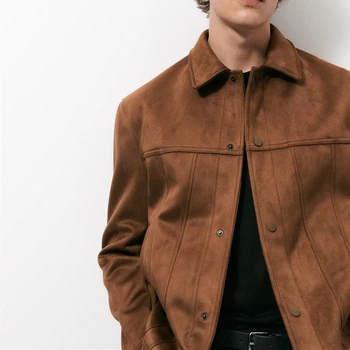 High Quality Casual Luxury Suede Shacket Custom Button Blank Cropped Work Jacket for Winter Jacket Men